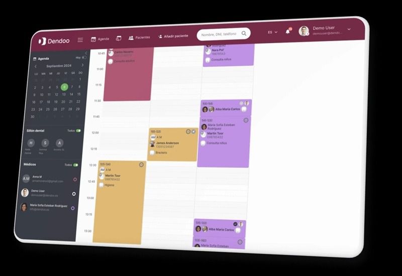 - Software de gestión y plataformas integradas. Centraliza agenda, historial clínico, comunicación con pacientes, facturación y control financiero. Al integrar estos módulos en una plataforma única, como Dendoo, se optimiza la coordinación entre el equipo clínico, el laboratorio y el paciente.