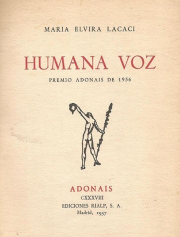 María Elvira Lacaci (Ferrol, 1916-Madrid, 1997) orienta su obra poética hacia la poesía social, en la que introduce elementos cristianos. Alcanzaron cierta popularidad en su momento Humana voz (1997, Ediciones Rialp), obra por la que recibió el Premio Adonáis en 1956 -fue la primera mujer en obtenerlo-; Sonido de Dios (1962, Ediciones Rialp); Al este de la ciudad (1963, Editorial Juan Flors, de Barcelona), con la que logró el Premio Nacional de la Crítica; Molinillo de papel (1968, Editora Nacional); y el libro de cuentos titulado El rey Baltasar (publicado en 1965 en la colección de Cultura Popular Juvenil de la editorial Doncel). Estos versos definen la humildad de su carácter: “Me siento vagabunda de las Letras. / Quiero comer mi pan con el mendigo. / Beber el vino de todos. / Tomar el sol, / tendida, / sobre la hierba húmeda”. (Del poema “A la poesía”, incluido en Al este de la ciudad).