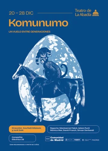 KOMONUMO, un vuelo entre generaciones Creación y Dirección: Ana Redi-Milatovic y Jordi Solé Reparto: Momo Fabré | Martí Salvat, David Franch, Ovidi Llorente, Mónica Mar, Adam Purtí Producción: Eléctrico 28 Lugar: Teatro de La Abadía - Sala José Luis Alonso