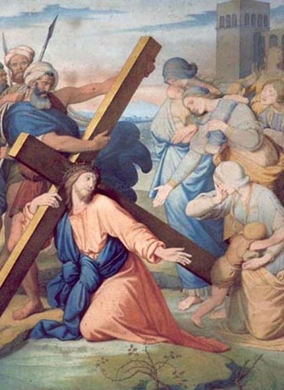«Lo seguía un gran gentío del pueblo, y de mujeres que se golpeaban el pecho y lanzaban lamentos por él. Jesús se volvió hacia ellas y les dijo: 'Hijas de Jerusalén, no lloréis por mí, llorad por vosotras y por vuestros hijos'»