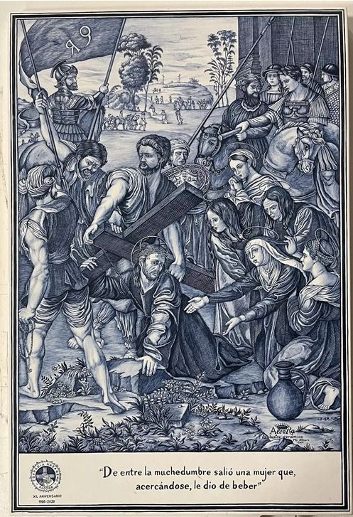 La tercera caída. Placa de cerámica pintada en su totalidad con un único color azul que recuerda a los orígenes de la cerámica de l’Alcora. La realizó la ceramista M.ª Carmen Albaro, basada en el grabado de La Caída en el Camino del Calvario (también conocido como El Pasmo de Sicilia) por Rafael Sanzio. Se encuentrra instalada en la calle Calvario, núm, 29, de Alcora /Castellón).