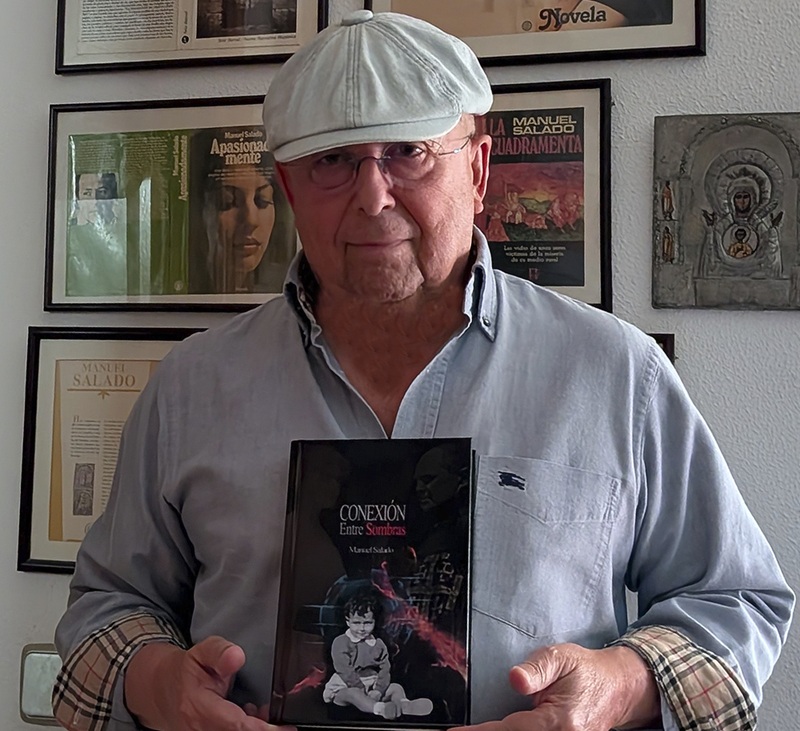 Manuel Salado, escritor heterodoxo, alejado de todas las corrientes literarias actuales, nacido en 1945 en un barco, atravesando el estrecho de Gibraltar, en tierra de nadie, entre la Península Ibérica y África, lo que debió marcar su nula pasión nacionalista.