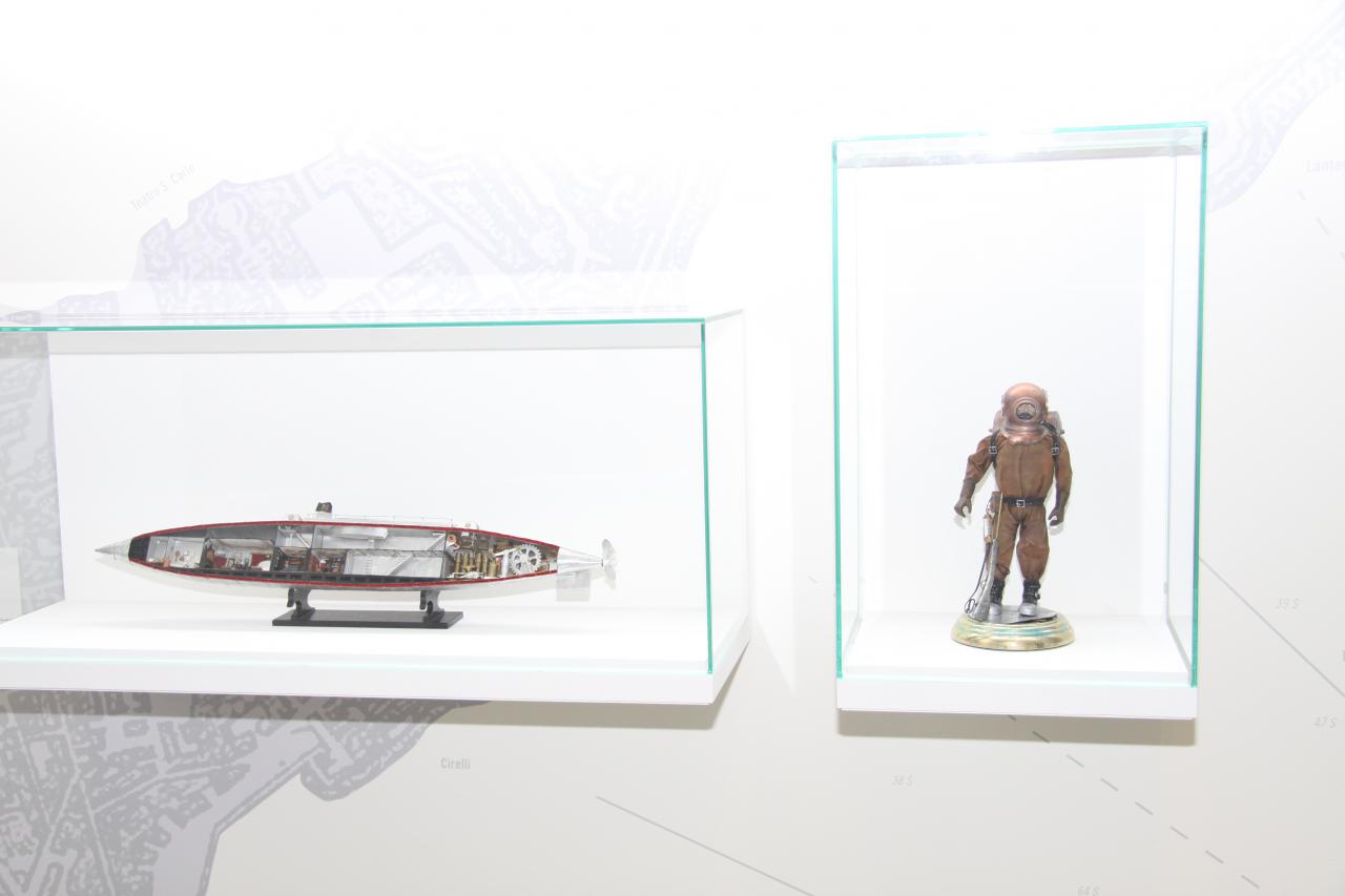 Finalmente tomó la palabra el artista conceptual Eric Fonteneau que manifestó que su idea fue crear una obra que entrase en diálogo con los objetos de Verne. “Algunas de las piezas aquí expuestas son muy poco frecuentes, como el dibujo que empleó para escribir La isla misteriosa o la biblioteca que cree para la exposición” y continuó diciendo “todos los viajes comienzan en un libro o en una biblioteca para documentarse para realizarlo”. Julio Verne fue un creador de biblioteca ya que no fue un viajero. Demostró que los mayores viajes se pueden realizar con la mente humana y qué duda cabe que lo consiguió. Sus novelas permanecerán en el corazón mientras vivamos pero también en formatos diferentes al libro como en las películas que se han realizado de sus libros o en esta exposición.