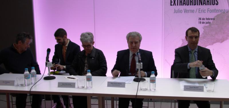 La presentación contó con la presencia de César Antonio Molina, director de Casa del Lector, Pascal Moulard, Director Delegado del Instituto Francés de Madrid, Agnès Marcetteau, directora del Museo Jules Verne de Nantes y Eric Fonteneau, artista encargado de confeccionar la exposición uniendo obras del museo con otras de su creación. Sintetizando el pasado con el presente para crear una muestra original y atractiva para los ojos de los lectores de Julio Verne.