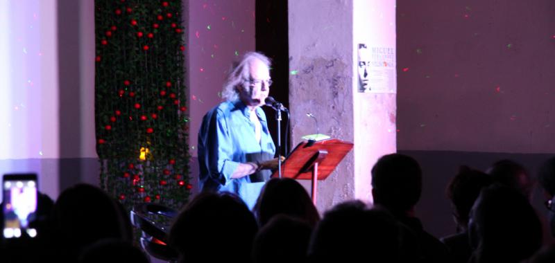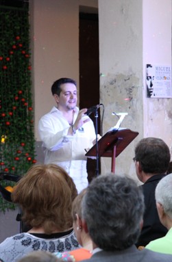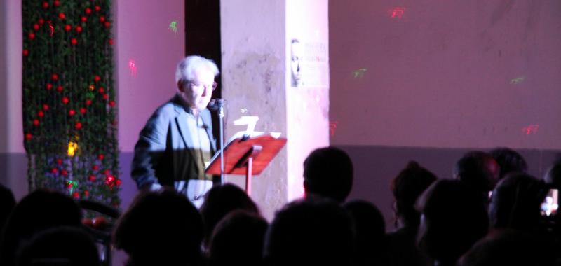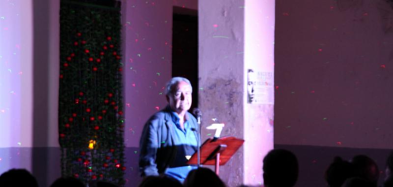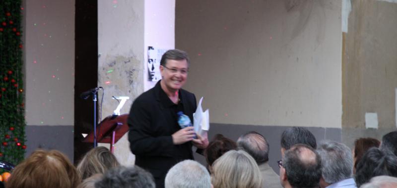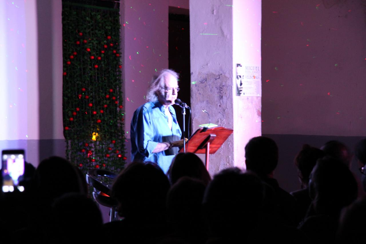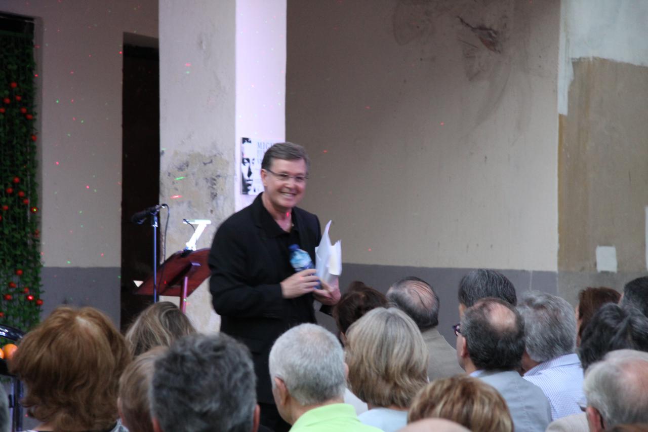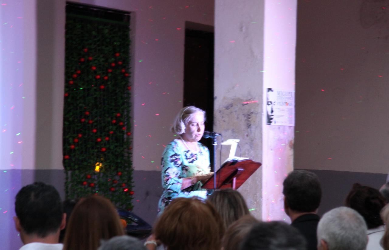 Alejandro Sanz, ojo no el conocido cantante, sino el presidente de la Asociación de Amigos de Vicente Aleixandre, ofició de maestro de ceremonias del evento. Con la voz del poeta sevillano hablando sobre Miguel Hernández comenzó una noche llena de poesía y recuerdos emocionados. Antes en la entrada nos obsequiaron con una naranja. Miguel Hernández visitaba a Vicente Aleixandre, cuando estaba postrado en el lecho del dolor durante la Guerra Civil, con un saco de naranjas que le ayudaban a su recuperación. Algo que nunca olvidó el poeta. Esa generosidad fue correspondida cuando Hernández estuvo preso y después a su muerte, siguió ayudando económicamente a su mujer Josefina Manresa con giros periódicos, aliviando así su difícil situación económica.