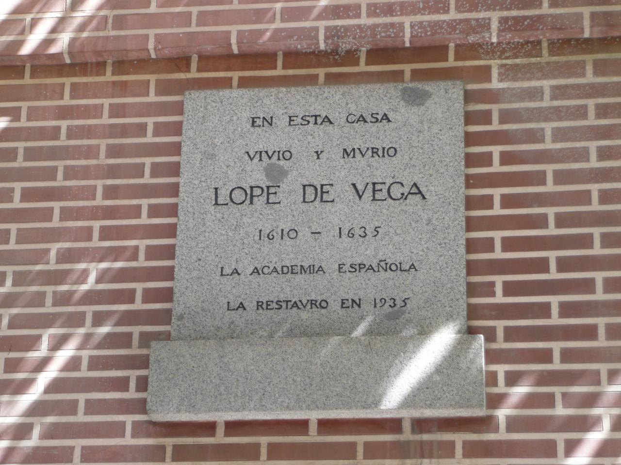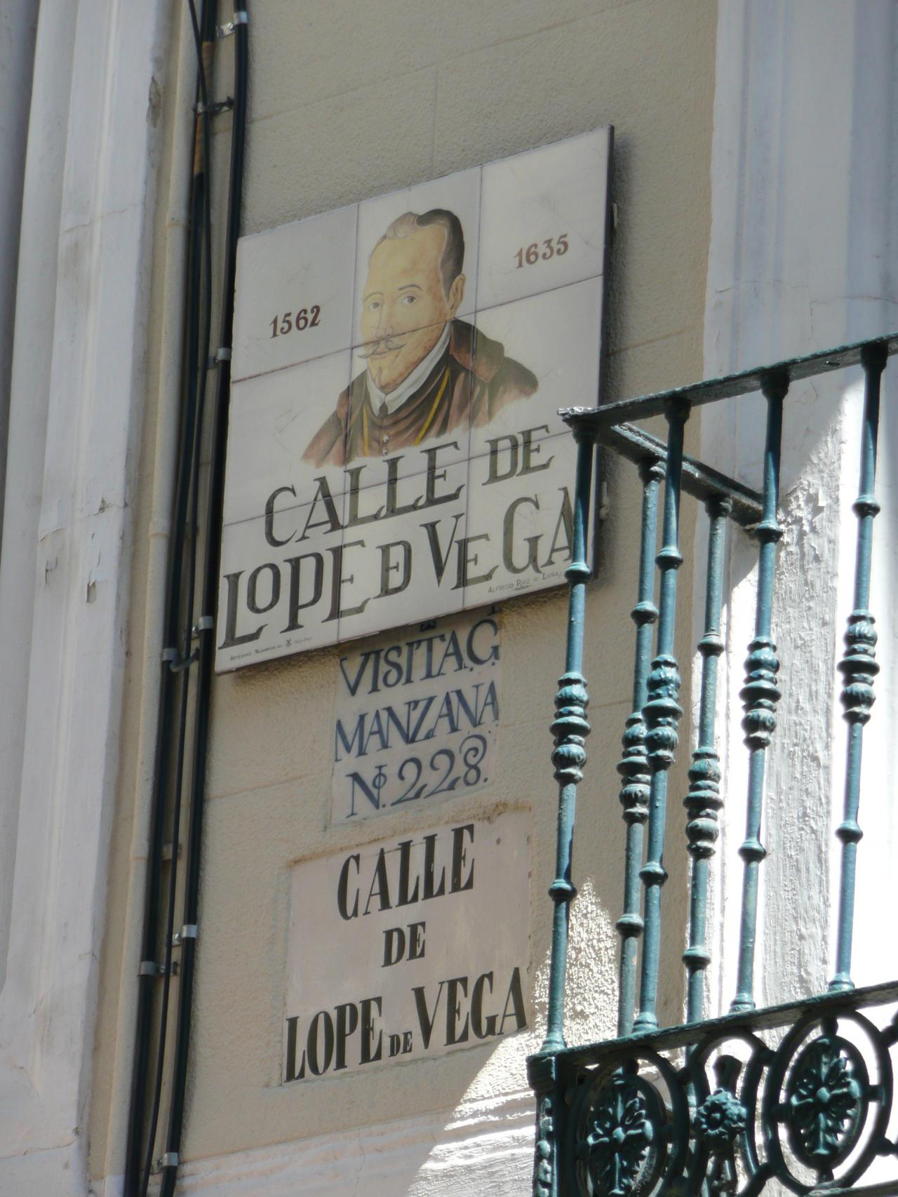 Sorprende que se inicie la visita en la Plaza de las Cortes junto al monumento a Cervantes, puesto que rivalizaron literariamente en su época, aunque en teatro poco tenía que hacer don Miguel frente a Lope, ni en calidad, ni mucho menos en cantidad de textos salidos de su pluma, pero tiene una lógica interna que el paseante irá descubriendo conforme se vaya haciendo el recorrido.