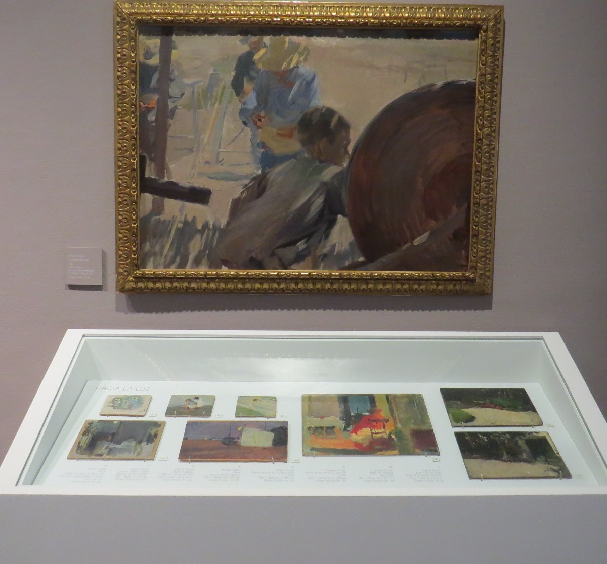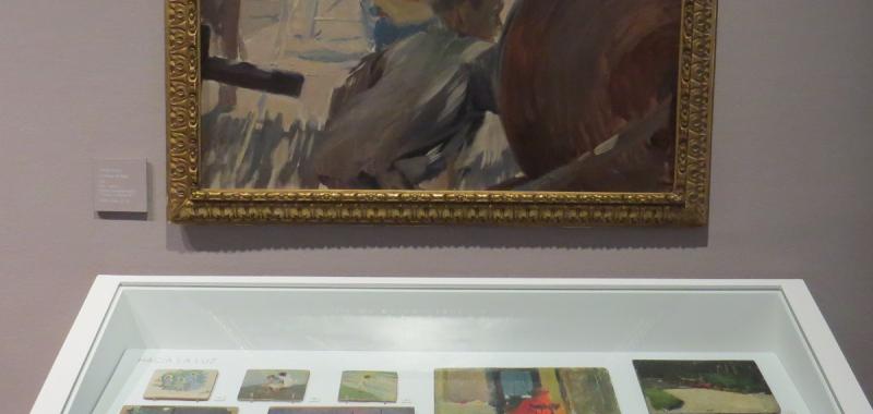 • Abajo, tablillas pintadas por Sorolla y arriba la obra “Cordeleros”, Jávea, 1897