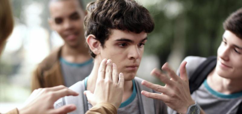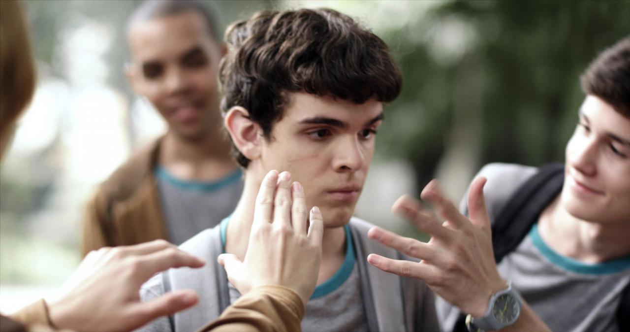A primera vista”, escrita y dirigida por Daniel Ribeiro, película brasileña sobre el despertar sexual de un adolescente. Es el final del verano en São Paulo. Leonardo, de 15 años, es ciego, querría ser más independiente, estudiar en el extranjero, y también enamorarse. Un día, Gabriel, un nuevo estudiante, llega a su clase. Los dos adolescentes se reúnen y poco a poco, su amistad parece evolucionar hacia algo más.