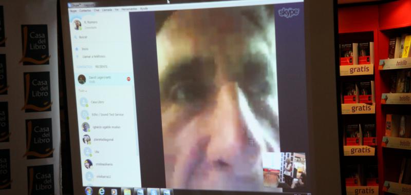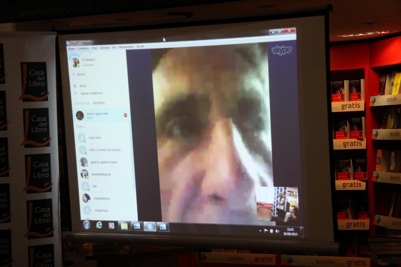 Antes de dar comienzo a la lectura se conectó por Skype con el escritor sueco; entre interrupciones y malas conexiones pudimos oírle decir que la idea de esta novela se le ocurrió cuando estaba esperando en un semáforo. Pensó en qué ocurriría si un niño autista con el síndrome de Rett, - tienen la rara habilidad de dibujar de manera muy precisa -, presenciara un acto criminal, un asesinato.
