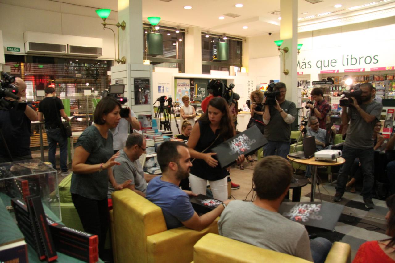 Los primeros en descubrirlo han sido los veinte afortunados lectores que se han pasado toda la noche leyendo el libro. En Madrid, los diez afortunados, no eran todos madrileños, los había de Valladolid, de Sevilla, de Talavera de la Reina, de Guadalajara y hasta de Móstoles. El resto, sí vivían en la capital, aunque alguna era de Murcia. Empatados en cuanto a género, un sorteo muy políticamente correcto, la profesión que más predominaba era la de periodista y bloguero. Se ve que en las redes sociales los periodistas y los políticos controlan el cotarro.