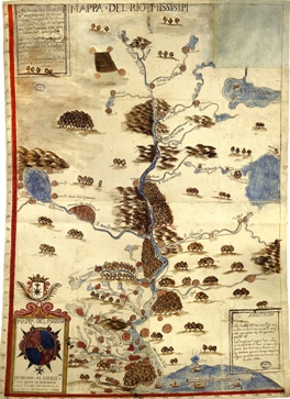 La colonización estadounidense del Lejano Oeste en el siglo XIX estuvo precedida por las expediciones españolas desde Florida y Nuevo México, entre los siglos XVI y XVIII, que estuvieron guiadas en un primer momento por la búsqueda de imaginarias riquezas y que resultaron en una precaria pero prolongada presencia en los territorios del sudoeste, y durante unas décadas, en toda la cuenca del Misisipi. Quedan pocos testimonios artísticos de esta etapa, pero contamos con la cartografía para seguir las rutas, los asentamientos, las misiones y los presidios, así como las líneas de contacto y de fricción con las tribus indias. Los mapas elegidos ofrecen además un elevado valor estético y algunos de ellos incluyen dibujos de figuras y tipis (tiendas cónicas, originalmente hechas de pieles de animales como el bisonte, y palos de madera).