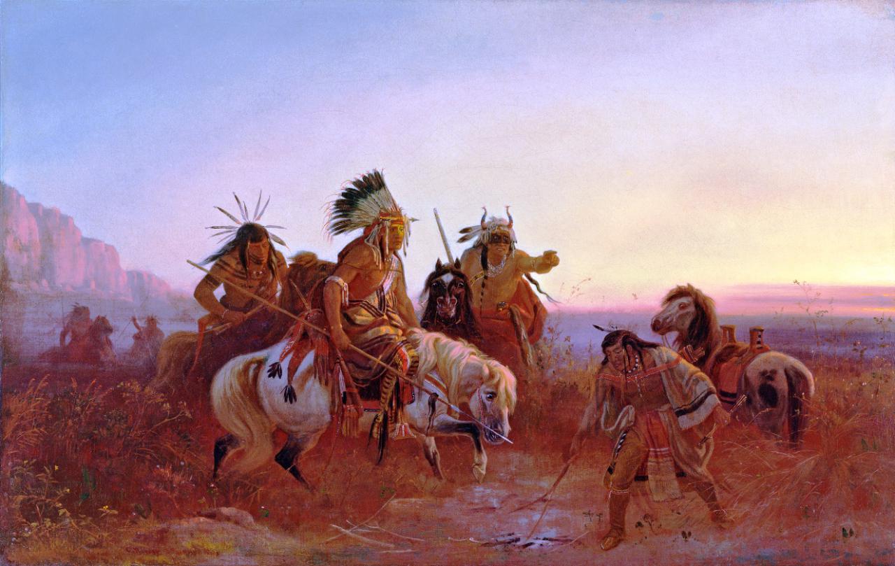 Los primeros artistas que se adentraron en el Oeste en los años treinta del siglo XIX no fueron paisajistas sino retratistas y, con mayor o menor rigor científico, etnógrafos. George Catlin, con su extraordinaria Galería India, y Karl Bodmer, con la precisa documentación gráfica de los Viajes en el interior de Norteamérica, del antropólogo Maximilian zu Wied-Neuwied, permiten conocer en profundidad los campamentos indios, la caza del búfalo y los rituales de numerosas tribus, así como fisonomías y atuendos. Ellos dieron paso a una visión idealizada pero melancólica de la vida india, en la que se funden paisaje y figuras, fantasía y etnografía.