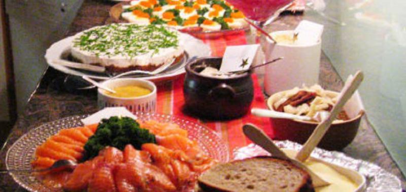 Desde finales de noviembre los restaurantes ofrecen el suculento julbord o bufé de Navidad compuesto de especialidades suecas como arenque, salmón, gratinado de patatas y anchoas, albóndigas con salsa de arándanos o jamón marinado con mostaza.
