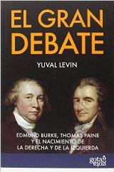 En El gran debate, Yuval Levin explora las raíces históricas de la división derecha/izquierda estudiando las ideas de los dos hombres que a finales del siglo XVIII representaron mejor el origen de cada término: Edmund Burke y Thomas Paine.
