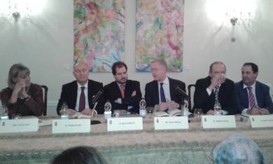 | | Vicente Palacio, Javier Solana y Eva Sáiz (Foto: Alfredo Crespo) |