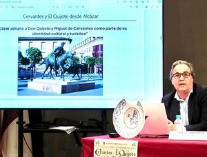 Su conferencia «La mejor novela del mundo que nadie lee: una llamada a los pueblos de la Mancha» despertó un gran interés con el aforo de la sala lleno a rebosar. El filólogo norteamericano fue presentado por Juan Bautista Mata presidente de la Sociedad Cervantina de Alcázar.