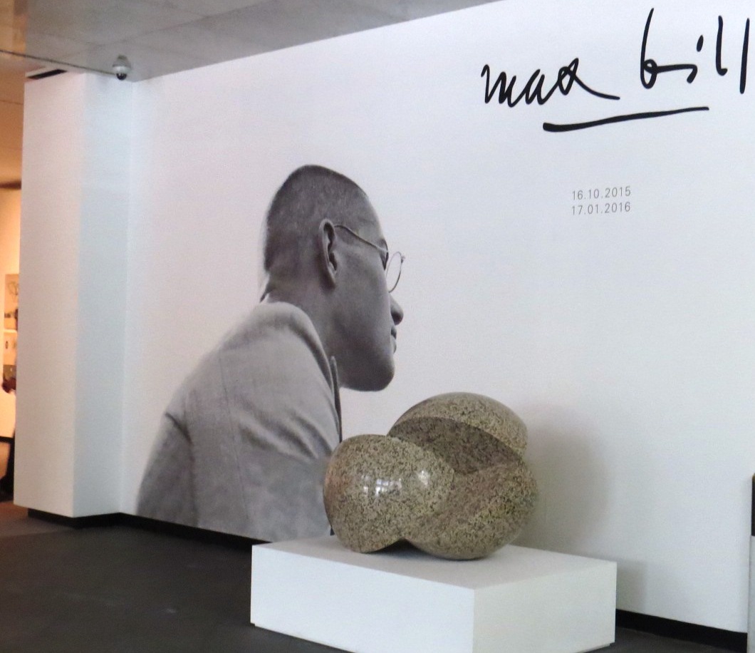 En la sede de la Fundación Juan March, situada en la madrileña calle de Castelló número 77, se presenta, hasta el día 17 de enero de 2016, la primera retrospectiva de Max Bill en España que exhibe de manera concentrada la obra completa del artista, porque cubre, tanto cronológica como temáticamente, todos los aspectos de su polifacética creación: la pintura, la obra gráfica, la escultura, la arquitectura, el diseño de libros y revistas, el diseño industrial y de mobiliario, el grafismo y la tipografía publicitaria –desde los carteles de gran formato hasta las pequeñas inserciones en publicaciones periódicas– y el diseño de espacios expositivos.