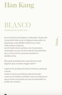 A partir de la redacción aparentemente banal de una lista de cosas blancas, Han Kang hace un conmovedor ejercicio de introspección, buscando el epicentro de su dolor existencial en su nueva novela "Blanco".