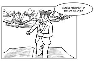 Con el argumento en los talones.