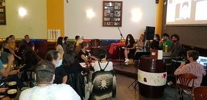 El pasado miércoles, 14 de octubre a las siete de la tarde, el grupo de jóvenes poetas valencianos Poesía 90 debutó en el escenario de La Cruz del Sur (Campoamor, 57). Manteniendo las medidas de seguridad sanitaria exigidas por la situación epidémica, el público cumplió a la anunciada cita y el aforo se completó días antes del evento mediante reservas.