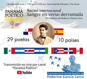 Este sábado 5 de junio el legendario escritor y poeta español Federico García Lorca, estará cumpliendo 123 años, en homenaje al aniversario de su natalicio el panameño Edwin Chacón, escritor, poeta, editor y director del sitio web literario Panamá Poético, ha tenido la iniciativa de realizar distintas actividades que dieron inicio el 31 de mayo y finalizan el 5 de junio.